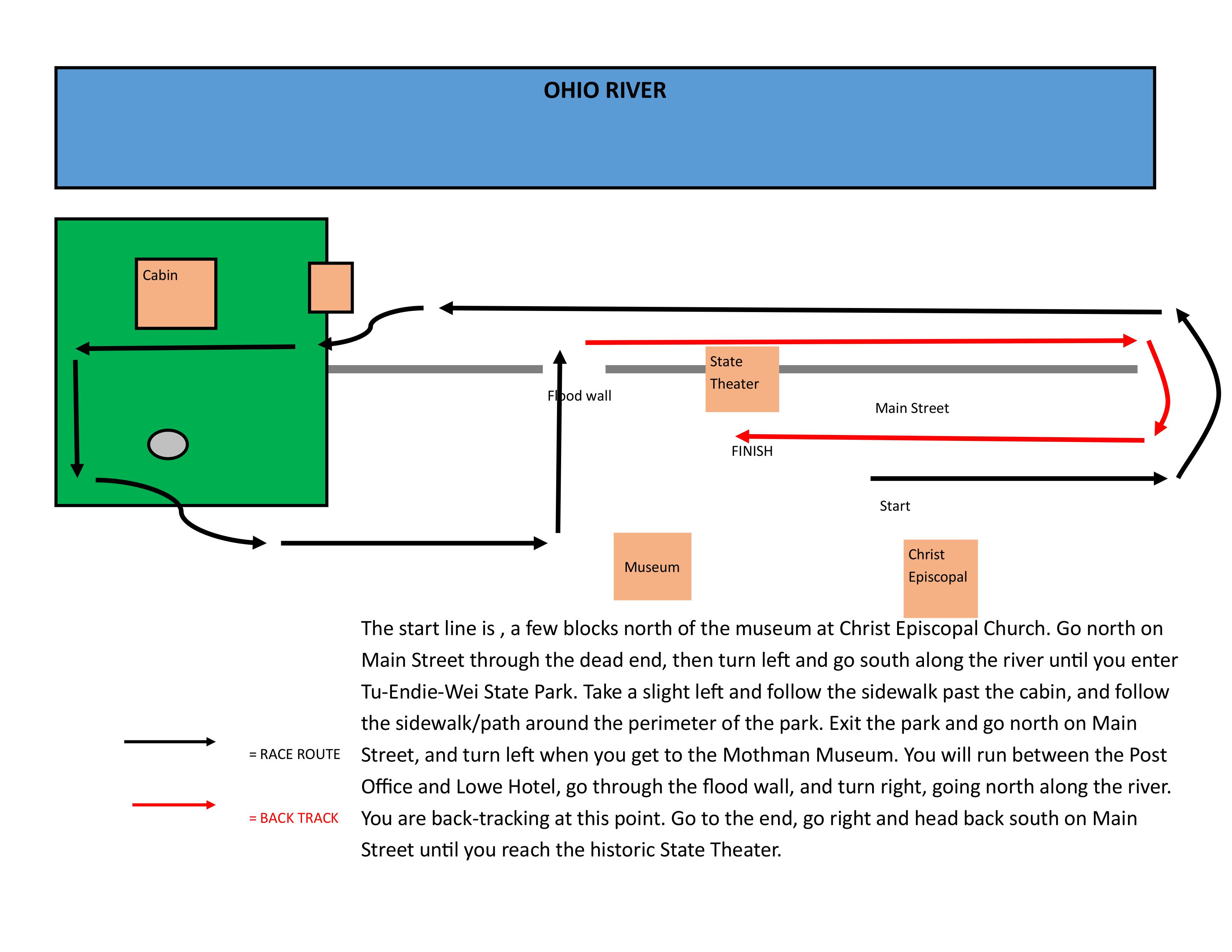 This run/wal will take place in historic downtown Point Pleasant. You will run on Main street, Tu-Endie-Wei State Park, and follow a beautiful trail on the bank on the Ohio River. This is flat and includes sidewalks, pavement, gravel, and grass.